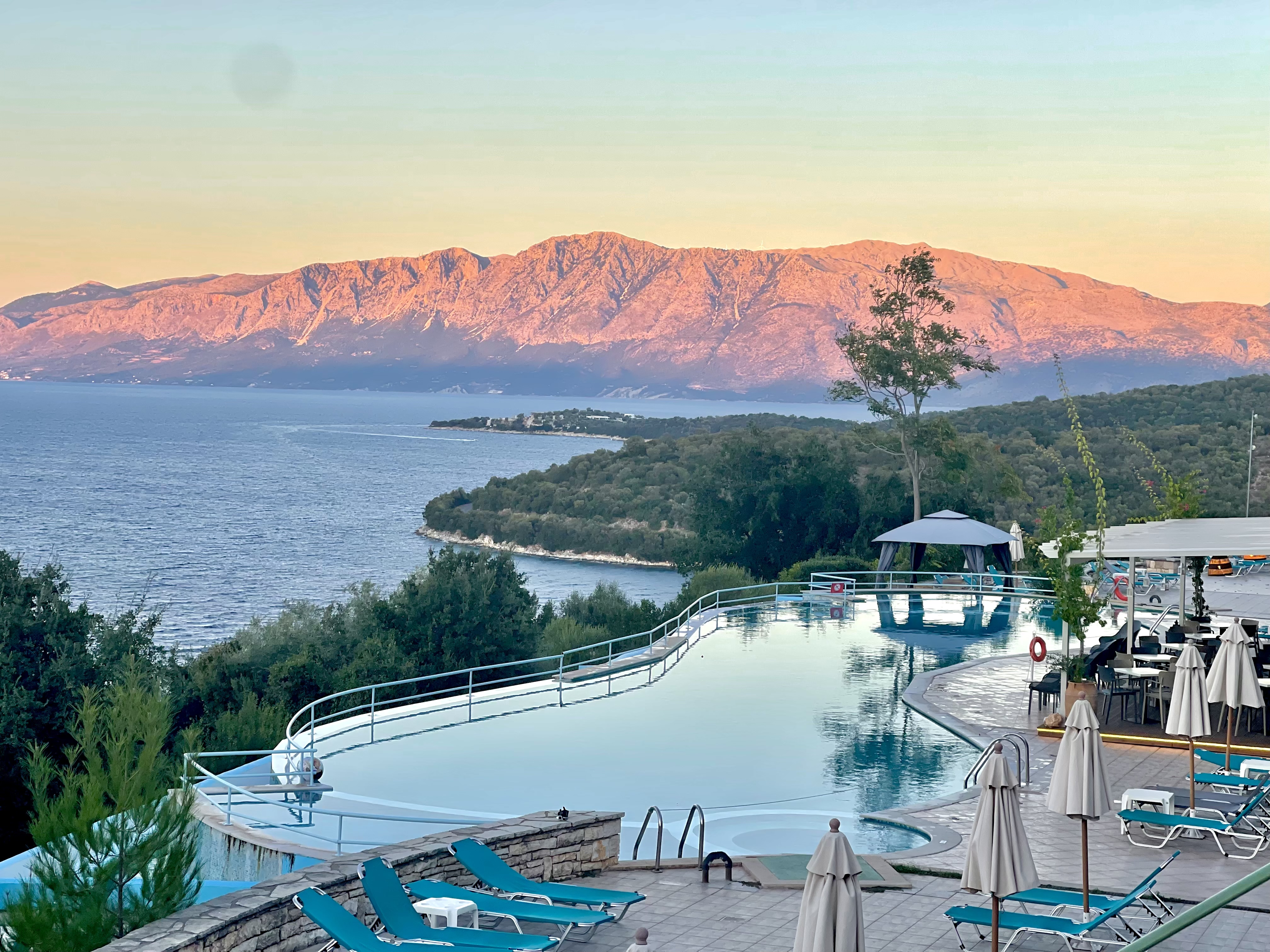 Με φόντο τον Σκορπιό του Ωνάση και το κοσμοπολίτικο Νυδρι της Λευκάδας δεσπόζει το ξενοδοχειο πανω σε ενα καταπτασσινο λοφο με 180 μοίρες θεα από την Παλαιρο της Αιτωλοακαρνανιας εως την Λευκαδα.